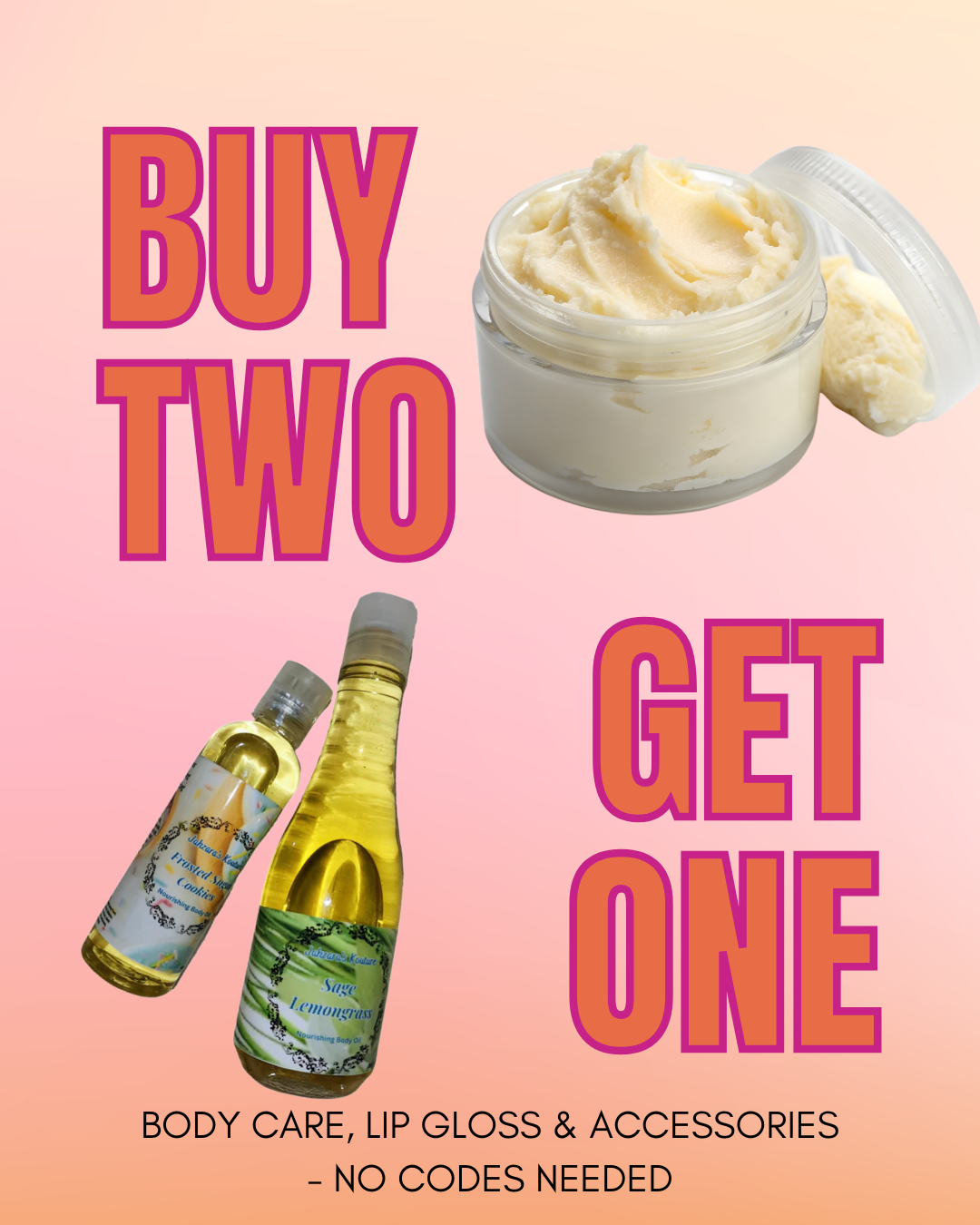 Body Care & Lip Gloss Products are Buy 2 get 1 FREE